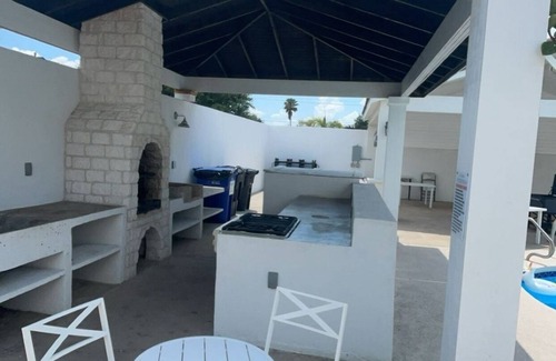 * Reservation is for a max of 16 guests. If you intend to invite people or host an event please you must inform me prior making the reservation; additional fees apply. This home offers excellent outdoor amenities, including outdoor kitchen, three outdoor restrooms, shower, changing room, an 85” smart TV with Bose speakers, outdoor weatherproof pool table 🎱 spacious parking lot, 3 rectangular outdoor tables, 30 chairs, BBQ grill, outdoor fans, portable ice cooler, and a firepit for your enjoyment.