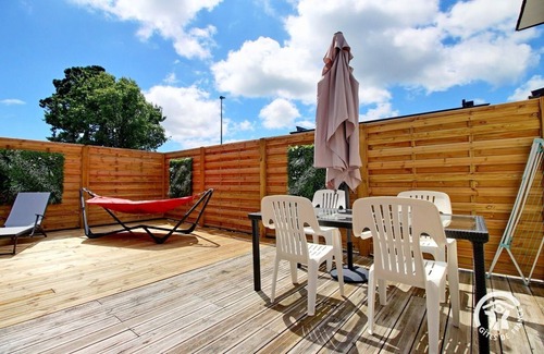 Studio furnished as follows: - Living room with dining area, lounge area and foldaway bed 140 x 190 - Equipped kitchen open to the living room - Bathroom with shower - Independent toilet with hand basin The accommodation is not equipped with a washing machine, a laundromat is located 350m away. (iron and ironing board on request) Exteriors: Spacious 60m2 terrace facing south with garden furniture, outdoor table, hammock, sun loungers and barbecue Private garden at the front of the house Parking spaces inside the property Accommodation adjoining the owners' house. Welcome to this ideally located holiday apartment, just a few steps from the Port-Blanc pier, the starting point for a getaway to the islands of the Gulf of Morbihan. You will appreciate its large south-facing terrace, perfectly designed to enjoy beautiful sunny days in complete privacy, as well as its private garden on the north side, offering a haven of peace. Less than 50m away, a small beach awaits you for moments of swimming and relaxing on the sand. From the gîte, go on foot or by bike to explore the magnificent landscapes of the Gulf of Morbihan by following the coastal paths. Baden, located between Vannes and Auray, will seduce you with its numerous activities, shops and restaurants to enhance your stay. Water sports and golf enthusiasts will find what they are looking for here. Less than 1km away, sit on the terrace of an oyster farm to enjoy a platter of oysters while enjoying a breathtaking view of the sea.