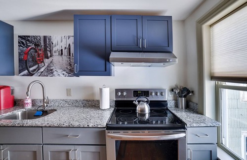 Guests have access to the entire apartment on the second and third floors. This apartment is located above the store front Artsy Olive. The parking for this unit is located on Race Street. One parking spot is on the parking deck to the left, while the second spot is across the street marked "91 Broadway".
