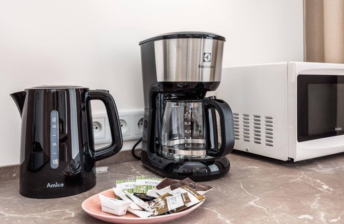 The modern, air-conditioned apartment is located on the 1st floor and can accommodate 2 people. The space of the apartment includes a living room with a kitchenette, a balcony and a bathroom with a shower. A balcony with garden furniture will be a great place to relax. The apartment is distinguished by modern design, aesthetics and functionality. The living area with a sofa bed and TV is a perfect place to rest and relax, in addition, a fully equipped kitchenette allows you to prepare your favorite meals. Pleasant design and comprehensive equipment with the necessary kitchen and bathroom accessories guarantee a comfortable stay.