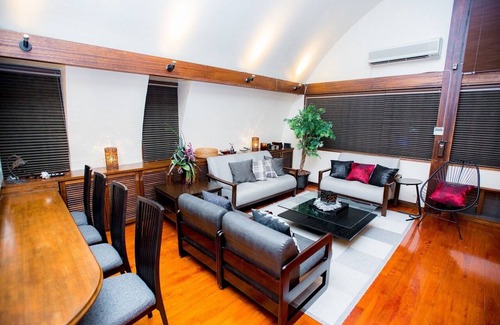 Located in Uruma, this 4-bedroom, 2-bathroom apartment lets you experience it all. Fans of nature and the outdoors will love being 20 minutes by car from Blue Cave and 34 minutes from Araha Beach. You'll easily make the quick 7-minute drive to Chanpuru Market or the 7-minute drive to Hija River.