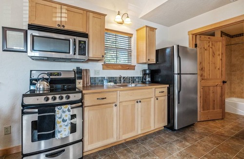 * Kitchen: Fully equipped with full size oven, stove, microwave, refrigerator, coffee maker, and cookware