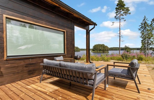 110 km to the north from Helsinki in Harviala, Janakkala, this modern 105 m² lakeside villa was built in 2023 by lake Sääjärvi. There is a campfire site and a pier by the lake. The bottom of the lake is soft near the shore, and you can access it for swimming from the pier.