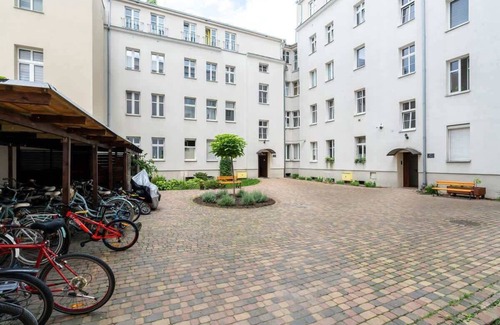 This unique Apartment is located in a renovated historic building on Kosińskiego Street in the centre of Poznań. Characteristic for this location is the proximity to all important places in the city. An unquestionable advantage is the neighbourhood rich in green areas. The John Paul II Park can be reached in a 15-minute walk and the Wilda beach on the Warta River is at a distance of 1.9 km. In the immediate vicinity, there is a tram stop connected with the rest of the city. This allows us to reach many of Poznań's attractions such as the Old Market or the Old Brewery. Fans of water entertainment will surely appreciate the fact that, having chosen this offer, only 1.5 km separates them from the open-air Summer Swimming Pool Chwiałka Posir - an ideal place during hot days. For students, an important detail is that one of the buildings of Poznan University of Technology is located 850 m from the flat. Nearby we can find restaurants and cafes to the nearest ones include: Karczma u Grzegorza (550 m) and PierjnikoMania (800 m). We can do fast shopping in many shops available in the neighbourhood. The nearest Żabka shop is located just around the corner. In addition, the Green Point shopping centre is located nearby (500 m.)