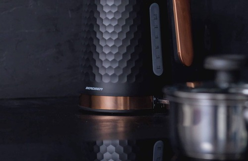 Oven, dishwasher, induction hob, extractor fan, capsule coffee machine, fridge, freezer, electric kettle, cutlery and dishes set, mugs, glasses, frying pan, pots, wine glasses.