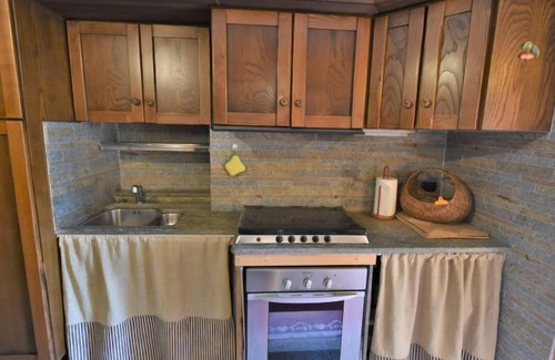 3-room apartment 50 m2, on the upper ground floor, east facing position. Rustic and wooden furniture furnishings: living/dining room with dining table, TV, radio and wood-burning stove. Exit to the garden. 1 small double bedroom. 1 small room, without window, without wardrobe with 1 x 2 bunk beds. Small kitchenette (oven, 4 induction hot plates, toaster, kettle, electric coffee machine, Capsules for coffee machine (Nespresso) free). Shower/bidet/WC. Wood heating, boiler (65 litres). Parquet floors, natural stone floors. Garden 80 m2, south facing position, lawn. Barbecue, deck chairs (2). Panoramic view of the mountains and the valley. Facilities: washing machine, hair dryer. Internet (WiFi, free). Please note: non-smoking house. Maximum 1 pet/ dog allowed. Private entrance. IT014064C2SO5HNPV5