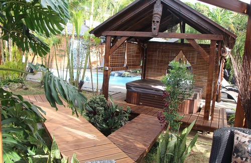 Ground floor apartments in a property of 1300 sqm with tropical garden, JACUZZI PRIVACY sharing pool access, Balinese kiosk beautifully dressed sail, covered and uncovered terraces, sea view, close to all amenities, parking and independent access, Chinese grocery store at 100 m, leader price at 4 mm, jumbo score at 20 mm, very well located in the comfortable band of 300 M of altitude ballades towards the high (Maido, Mafate ...) or down (beach of Boucan, from the hermitage) easy, truck bar delivering trays nearby delivery by the week or the weekend