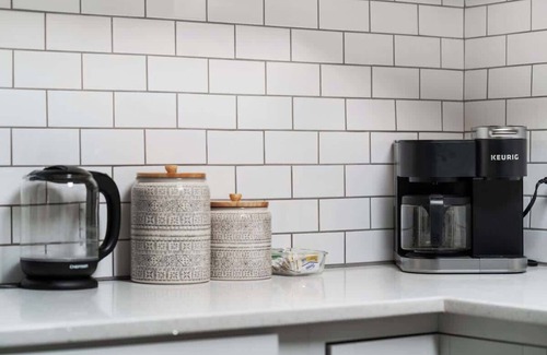 > Fully Equipped Kitchen – Stainless steel appliances, Keurig + drip coffee machines, basic cooking essentials—ready for family feasts.