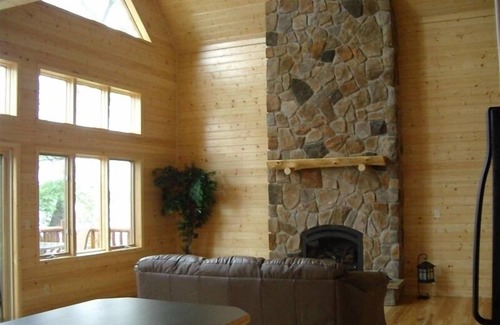Our villa was built in 2007 and is in a quiet development with 700 feet of lakeshore and a public boat landing 1/2 mile away. It has a sandy beach and gradual elevation to the lake. The main floor has a modern kitchen, a great room with hardwood floors and a 16 ft stone fireplace, two bedrooms, and a full bath. The loft has the master bedroom and large master bath. There is also an unfinished basement with a pool table and air hockey table.