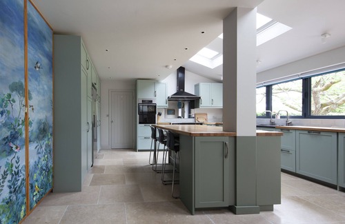 This family home has recently been completely renovated and decorated to a high standard. It has wifi throughout the house suitable for anyone who needs to work during their holiday. The ground floor is mostly laid with stone slabs, cool under foot in the summer and cosy with underfloor heating in the winter, while the two livings rooms have wooden floors, also with underfloor heating. The large kitchen-diner has bi-fold doors and windows looking out over the garden. The dining table can comfortably sit 12 people. The kitchen is well equipped with an electric range, induction hob, combi microwave oven, warming drawer, two dishwashers and an American style fridge-freezer plus a large overflow fridge.