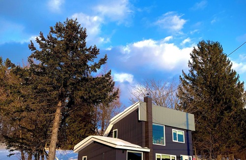 Large panoramic view of the ski slopes from the large windows. Ezo squirrels and wild birds visit the windows and can be fed during your stay. The warmth of the wood stove creates a comfortable moment. (Pets are allowed.) | House in 南富良野町