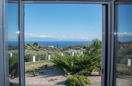 Villa Iremia is a 3 double bedroom, 3 bathroom property with open plan kitchen, dining and living room. All windows and doors have insect screens. It is located in Kakorema, Chrani, Messina, Peloponnese, Greece. It has wonderful views towards the sea. It is very peaceful and private and has its own private pool.