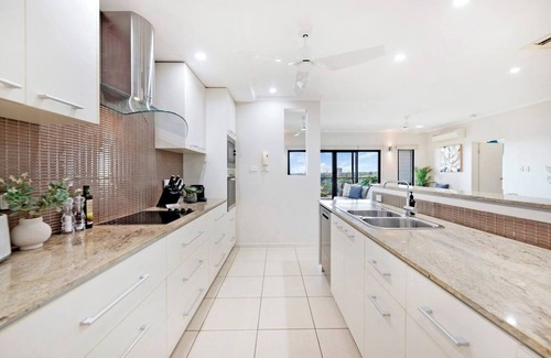 Enjoy immaculate, light-filled interiors and breathtaking vistas from this luxe penthouse getaway, ideally located just a five-minute drive from the CBD and a 15-minute walk from Mindil Beach and its iconic sunset markets. When you’re not strolling the waterfront, relax in air-conditioned comfort with a movie or dine alfresco on the generous balcony as you take in sweeping views over the Gardens Golf Course and Darwin Harbour. Make use of the shared wraparound pool and gym during your stay.