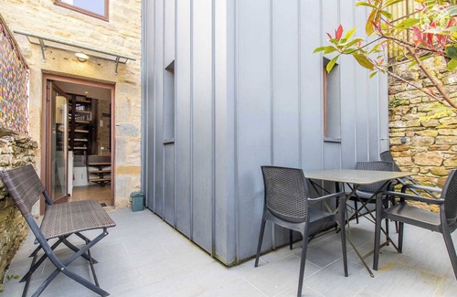 Lovely 18th century village house - steeped in history & carefully restored with style via a bold, elegant contemporary extension - located on the edge of a peaceful, mainly pedestrian alley, on the very top of the town. In a quiet residential area of the historic center, nestled a stone's throw from the illustrious medieval abbey, a world-renowned heritage jewel as well as all amenities (directly accessible on foot). Nestled in the wooded foothills of the South Burgundy massif between two national forests, in the hollow of the bucolic Grosne valley partly protected as a Natura 2000 Zone, the spiritual heart of medieval Europe endowed with the rare and very prestigious European Heritage label. ", Cluny has an invaluable heritage and benefits from a magnificent preserved rural setting (sumptuous landscapes & panoramas), a succession of vineyard hillsides, bocages, wooded hills & rivers, to be discovered during walks in the countryside (on foot, bicycle or mountain bike). Very comfortable cottage with an unusual & atypical interior architecture. Beautiful volume of the living room enhanced by a sculptural ultra-design staircase. Warm contemporary character mixing pop touches & Scandinavian spirit, enhanced by a beautiful heritage restoration (stone walls & lintels, beams & frames… original). Lots of charm and character. Zen & very gentle atmosphere. Cozy & cocooning. Pleasant little intimate & vegetated terrace, opening onto a mini enclosed, neat and flowery garden. Composition: Semi-detached town house adjoining the owners' home (total independence). Wireless. Electric heating. Ground floor (with half level): living room-kitchen, lounge (extra convertible sofa 1 p. 110x190cm), bathroom (shower/Wc). 1st floor: bedroom (double bed 160x200cm). Private terrace + garden (space reserved on the owners' garden side). Free public parking 300m away. Amenities on site.