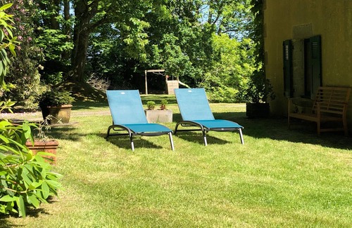 - An unfenced, south-facing 28 m² wooden terrace overlooking a private part of the garden, with 2 sun loungers. It also has garden furniture to make the most of fine weather.