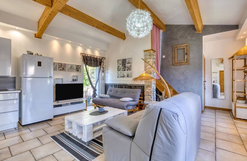 'Les bois flottés' with Private Terrace, Wi-Fi and Air Conditioning is located in Poussan. 'Les bois flottés' with Private Terrace, Wi-Fi and Air Conditioning provides accommodation, featuring Wellness Facilities, Fireplace/Heating, Entertainment, among other amenities. This Apartment features Wellness Facilities, Fireplace/Heating, Entertainment, to make your stay a comfortable one.