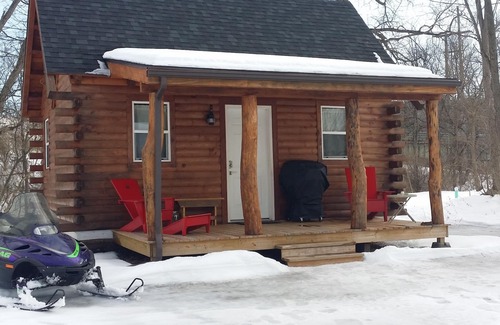 Our Moose Lodge is a four season rustic cabin (tiny house) located on our Mohawk River waterfront property. This cozy warm cabin was built using on site and local timber as well as reclaimed lumber. Includes full kitchen, full bath and loft with two full beds. First floor has a small couch that can be pulled out to accommodate more guests if needed. Smart TV sits above the large gas fireplace. Internet included as well as local channels. Well behaved pets allowed.