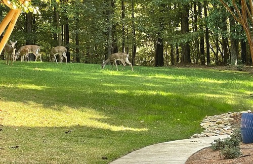 Enjoy a peaceful getaway in our charming loft in the trees. This studio-style carriage house retreat is located in a forested area, providing plenty of privacy and tranquility while still being a short walk from Lake Norman. The loft is surrounded by nature, with the possibility of spotting grazing deer.