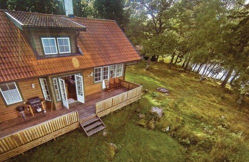 This well-maintained cottage with plenty of space and a wonderful open fireplace is situated on a headland in Lake Mälaren. Lake view from all rooms. Close to nature reserve for hiking. Large partly covered wooden terraces on three sides of the house. Rowing boat on own sandy beach with jetty. Free fishing in the lake. Close to Strömsholm and museum. Eskilstuna Zoo 20 km. Stockholm 120 km.