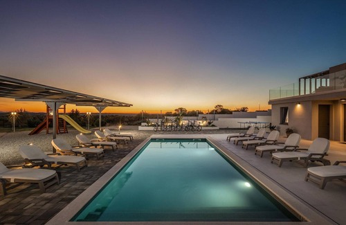 The fully fenced, 3300m2 large plot features a beautiful pool with a heating option which makes Villa Orijana an ideal choice for holidaying during the colder months. A lovely children's playground provides entertainment for the youngest guests. The outdoor grill is great for preparing fresh and delicious meals for your family and friends. There is also an orchard and a ten-year-old olive grove where guests can enjoy a stroll, enjoying the silence and the scents of nature.