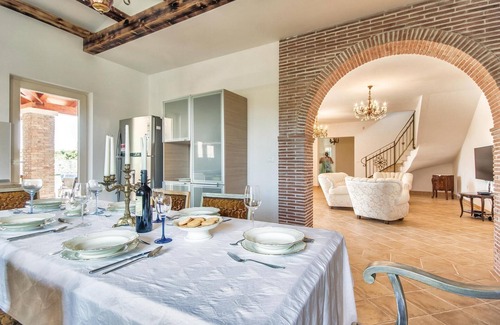 This vacation home is located in a small village near Pula. The spacious interiors are furnished for a pleasant stay. The property includes a large swimming pool, which provides fun and refreshment on hot summer days and right next to it you have a jacuzzi, where you can additionally relax. Spend summer evenings also outside on the terrace with delicious specialties from the grill and a glass of Malvasia in hand. Lovers of active recreation and cyclists will be delighted with the proximity of bike paths. Visit Nesactium, a nearby excavation site from the Roman period and the ancient city of Pula, where you can also discover monuments from the Roman period.