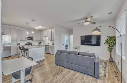 Stay in style in the booming city, famously dubbed "the Startup Capital of the South—Durham! This classy 1182-square-foot (~109-square-meters) 3-bedroom & 2-bathroom apartment features 2 King Bed & 2 Plush Full Beds for your comfort, Lightning Fast Wifi, a Separate Workstation, a Fully Equipped Kitchen, and other Luxury Amenities—specially designed for your longer length stays! Step out to a lively neighborhood, in the heart of Durham Central Park—steps from restaurants, cafés, bars, and shops!