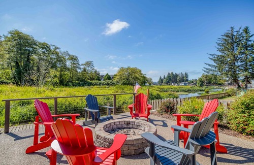 The front of Heron Cove is deceptive—it looks like a very pretty home in a residential neighborhood near Devils Lake. But it’s really a luxurious single-story palace sited on a gorgeous arm of the lake, with a yard opening to a slough vibrant with birdsong, reedy grasses and lily pads. A sunroom in the home puts you in a cushy armchair with a full view of the water so you can enjoy the swoop of swallows, the trill of blackbirds and the sight of deer grazing in the slough. The home is beautifully appointed, with hardwood floors, luxury furniture, welcoming decor, a dining room that seats ten, and a gorgeous custom kitchen with granite counters. The bedrooms have luxury linens and the baths are exquisitely tiled. A family room with a gas fireplace and large flat-screen TV/DVD adjoins the kitchen, while the sunroom provides extra space for quiet conversation. Outdoors a deck, dining table, patio furniture, barbecue, and a little boardwalk on the slough will entertain adults and children alike. Just a short walk to Sand Point Park for family swimming! If you are coming to the coast to crab in Siletz Bay, fish on the Siletz River, or boat around on Devils Lake, bring your boat, Heron Cove has off-street parking for your boat and vehicle! This location is just a ten-minute drive to the beach, dining, golf, and the Chinook Winds Casino. After your day exploring the coast, a private nature retreat awaits your return!