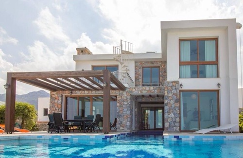 Luxurious villa with breathtaking seaview is located in Tatlisu. Luxurious villa with breathtaking seaview provides accommodation, featuring Wellness Facilities, Barbecue/Outdoor Cooking, Laundry, among other amenities. This Villa features Wellness Facilities, Barbecue/Outdoor Cooking, Laundry, to make your stay a comfortable one.