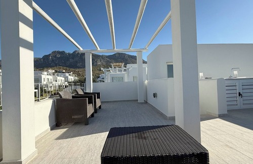 Enjoy your stay in this modern 2BR penthouse located in a secure gated complex just minutes from the sea. The apartment features a spacious living room, fully equipped kitchen, modern bathroom, and a large private terrace where you can relax with stunning views. Guests have access to the on-site swimming pool, sunbathing areas, and a well-equipped gym. Perfect for families or friends looking for comfort, style, and convenience in one place.