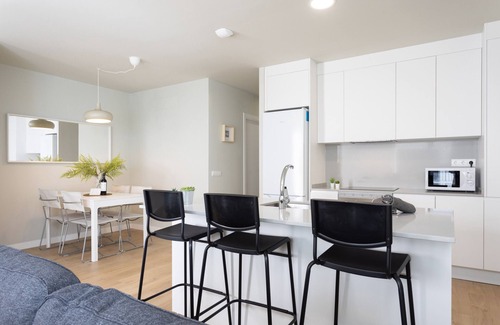 Brand new apartment with communal swimming pool and communal gym in a recently built complex on the south coast of the island and just 5 minutes walking from the beach. It has two furnished terraces to enjoy throughout the year due to the warm temperatures of the area, one at the front of the property with a barbecue, a table and armchairs to eat or relax that overlooks the living-dining room and another at the back with access from both bedrooms with two sunbeds to sunbathe. From the front terrace, you access the spacious living-dining room with an American kitchen with an island that is fully equipped and with a capsule coffee maker. In addition, it has a main bedroom with a 1.50 m bed and an en-suite bathroom with a shower. A second bedroom with two single beds and another full bathroom with a bathtub. Both bedrooms have elegant fans over the beds, which make the temperature in the property very pleasant: more ecological and more sustainable than air conditioning. Decorated in a modern style with great taste, it offers all the essential comforts for a holiday as a couple, family or for teleworking, such as 600 Mb WIFI, Smart TV or parking space. The complex is completely new and very quiet and the common areas are spacious. It stands out with a large pool with solarium and sunbeds to sunbathe.The area is away from large overcrowded tourist centres with a local atmosphere, but still offers within a few minutes' walk all the necessary facilities such as a supermarket, bars and restaurants and a beautiful fine sand beach famous for diving. Hiking lovers can depart from the same apartment along various paths to discover the unique coast, as well as small coves to swim in.The celebration of events and parties is expressly prohibited, as is the access of people outside the reservation. Guests are also asked to respect the rest of the neighbours, not making noise after 10:00 pm.Groups of young people under 20 years old are not accepted.VV-38-4-0104656