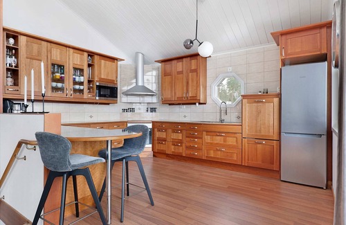 During your stay, the entire house and all its amenities, including convenient grill and 2 saunas are exclusively yours. From the fully-equipped kitchen and bathrooms to the living area with Smart TV, make yourself at home. Free parking included. Enjoy your private, cozy retreat!