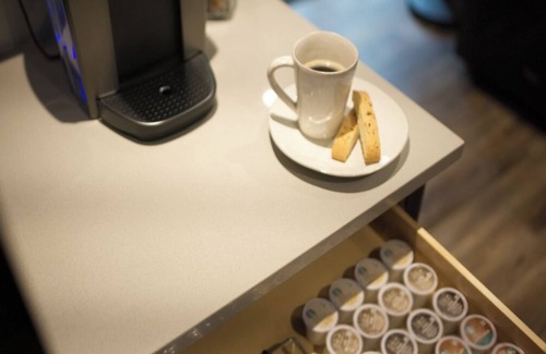 The open concept kitchen has everything you need to dine-in. Induction cooktop with hood, open shelving for easy access to the essentials, microwave, large fridge with freezer, dishwasher , oven and coffee bar with complimentary Keurig pods ranging in boldness as well as hot chocolate and an assortment of teas. Traditional coffee maker and grinder also available.