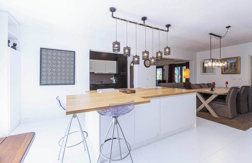 (Text automatically translated) Very nice and perfectly finished house with luxury and private swimming pool 8 x 5.5 m with lighting. The property is completely enclosed by a wooden fence and plants along the street. The garden is small but with beautiful exotic plants such as palm, bougainvillea, lemon tree, fig tree, etc. ... There is a mood lighting in the garden for the evening, which creates a romantic atmosphere.
