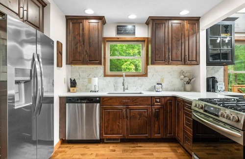 The 9 Oaks Log Cabin offers endless opportunities for outdoor adventures. Hike through the surrounding woods, fish in the lake, or simply relax by the fire pit under the stars. Explore nearby Nashville for its charming antique shops, art galleries, and country-style dining, or venture into Brown County State Park for scenic hikes, mountain biking, and more.