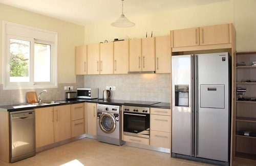 Our villa is designed to give you the comforts of home, so you will have a TV and Wi-Fi, a dining table for 6 indoors and a patio table for an additional 8 outside by the pool. A fully equipped kitchen including a dishwasher and washing machine so you don’t need to cram the suitcase with clothes for every single day.