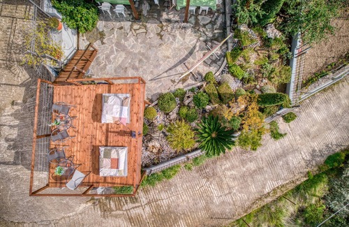 Our space has a rock garden and a courtyard in front of the 2 studios with sea and mountain view, with tables and comfortable chairs for eating, working and whatever the visitors want.