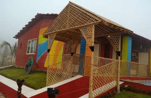 We have created a small village like ambiance in an acre of our farmland, with private swimming pool and providing other basic modern amenities and surrounded by beautiful moutains. Complete privacy for family and friends who want to spend quality time with each other in nature and have fun. Pax 12 to 15 easily. Mati is ideally situated around 50km away from Hustle- Bustle of Mumbai city and the drive is pleasant.