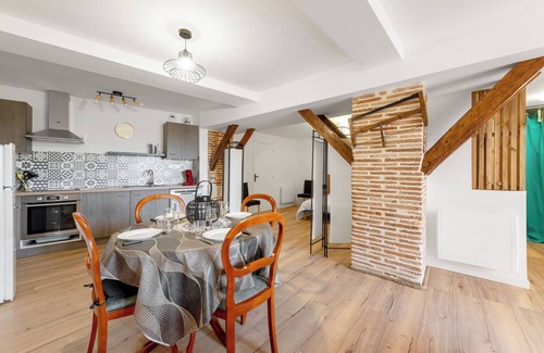 Medieval loft in historic city center is located in Castelnau-de-Montmiral. Medieval loft in historic city center provides accommodation, featuring Fireplace/Heating, Child Friendly, Kitchen, among other amenities. This Apartment features Fireplace/Heating, Child Friendly, Kitchen, to make your stay a comfortable one.