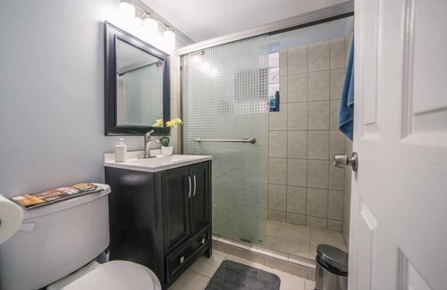 Steps from Midway Airport, our unit offers two bedrooms, a bathroom, a full kitchen with all your necessities and appliances, a dining space with a large stylish glass table and four chairs, and a living space with a couch and 55 inch TV with Roku.