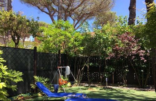 A few steps from the center of Milano Marittima (500 meters from the I Maggio roundabout) and 250 meters from the beach, nice 75 sqm apartment, equipped kitchen, living room with sofa bed, 1 bedroom with TV, spacious terrace, 1 bedroom with large wardrobe, chest of drawers, TV and possibility baby bed, bathroom with shower, nice garden, garage (1 parking space). Ideal for families.