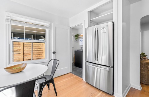 You'll be just two blocks away from charming downtown Newberg with its many restaurants, cafes, bars and shops. You will also be less than a mile from George Fox University and minutes away from hundreds of beautiful wineries. At the end of your day, enjoy wine on the patio with a fire pit and cafe lights. We have done our best to fill the house with everything you'll need to have a relaxing stay. Each room (two bedrooms and the living room) has a separate AC unit that is remote controlled. Each bedroom has a high-end queen mattress, comforter and black out curtains. The fully fenced in backyard and entire house is all yours during your stay.