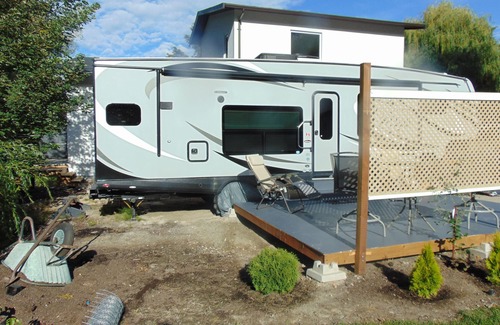 This is a brand new top of the line 34 Ft 5th wheel with 2 slide-outs. It is 5 minute walk to the beach, and boat launch. Summerland is the original location of the first of the modern wineries which is Sumac Ridge Winery, now the Okanagan has over 200 wineries. Along with Golf, fishing, Bars, Restaurants, Ironman competition, Biking and Running Paths. This property is 5 minutes to town, 15 minutes to Penticton and 45 minutes south to the USA border and north to Kelowna . Occupancy is restricted to 2 persons, parking for unit by 5th wheel .