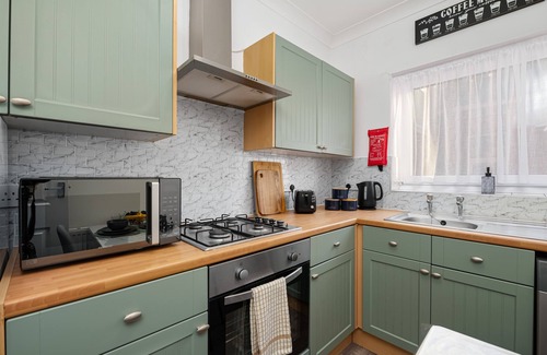The kitchen is well equipped and has all the amenities you’d need for a comfortable stay, including microwave, kettle, toaster, oven, fridge freezer as well as a washing machine with washing powder provided.