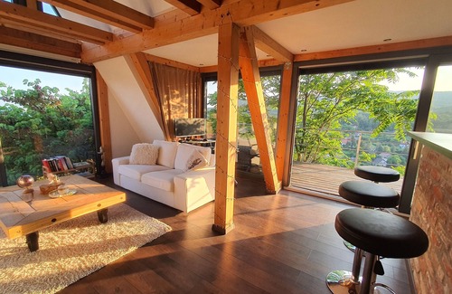 Welcome to our listing! Discover the allure of our chic and contemporary cottage, nestled amidst the breathtaking beauty of Mecsek, right on the outskirts of a lush forest. This haven serves as an ideal base for invigorating hikes, bike expeditions, or simply unwinding on the expansive terrace, offering enchanting vistas of both the city and the woodlands.