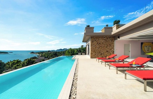 Villa is located in the northeast corner of Samui. It is known as the rich area of Samui, which is comparable to Beverly Hills in Samui. Designer classics perfectly integrate the luxury art contemporary style and the original ecology Samui. The complete set of furniture is custom-made from Germany. The classic luxury fully reflects the noble and luxury feeling of the villa. The 270° sea-view is a symbol of the rich. Broad vision It is refreshing. and it only about 5 mins by car