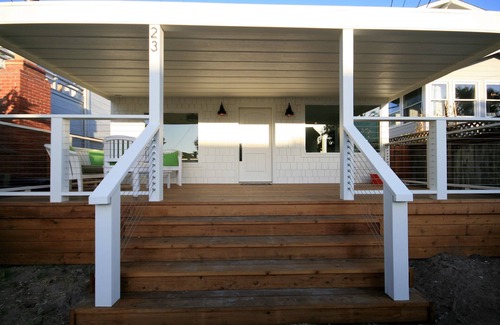This unique and modern home is located just steps from the ocean, about a 5 min walk to downtown. A house for those who appreciate the finer things in life. This three bedroom, one bath home sleeps 8. The house has been completely remodeled as of July 2017, build with attention to detail and comfort with impeccable finishes throughout, modern high-end European furniture and top-of-the-line appliances. A perfect place to relax and unwind on the deck off the living room or quietly enjoy the private backyard. There is no other house in Stinson Beach like it!