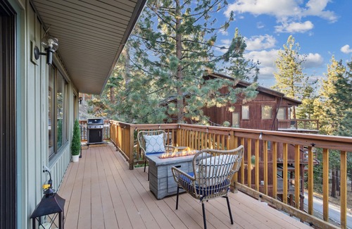 “Modern" open floor plan with a Tahoe cabin feel that is cozy, warm and welcoming. All new linens and towels for your comfort while enjoying this amazing secluded Zephyr Heights home in South Lake Tahoe. This home has 3 bedrooms and 3 bathrooms with 7 beds and a air mattress. TVs in every room with Access to Netflix, Prime, Direct TV App and YouTube. The garage is a mini game room with a full size fridge, ping pong table and TV. Also, a great space when getting off the slopes in the winter to store all your skis and snowboard gear.