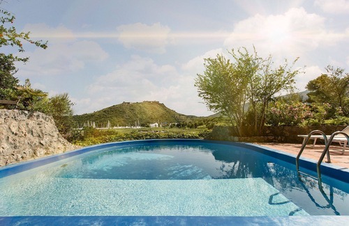 The house is not suitable for people with reduced mobility; the villa is spread over three levels, with stairs leading to the entrance, the bedrooms, and the pool.
