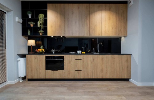 The modern design of the apartment will appeal to the most demanding. The apartment is fully equipped, there is a stylishly furnished kitchenette with an oven, dishwasher and necessary kitchen utensils. The living room has a comfortable sofa, armchair and table with chairs. The rest of the apartment is a bedroom with a large comfortable bed and a stylish bathroom with a shower.