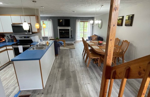 Freshly updated and tastefully decorated, clean and comfortable Townhouse, sleeps 8 people. Master bedroom features queen bed, Roku TV and private bathroom. Spa room with the Jacuzzi tub for two with direct access to the master bedroom and balcony overlooking woods surrounding Shawnee Mountain. Two full beds in the second bedroom, and two sleeper sofas in the living room. Living room is spacious with open access to the dining and kitchen area, allowing enough space for a large family with big dinning table for 8. Living room features 50 in TV with Roku connected to Netflix and Amazon Prime, fireplace. Slider doors to a deck with table, 4 chairs and open access to backyard with propane grill. Fast WIFI internet access is included and covers the whole property and backyard.